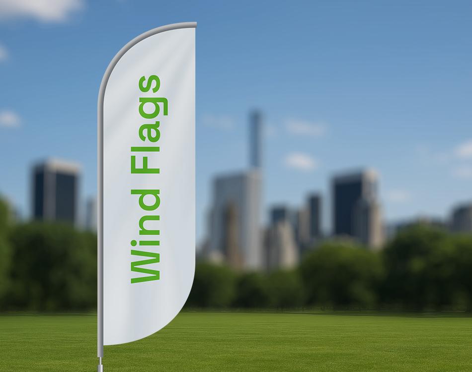 As wind flags ou wind banners são um tipo de mídia impressa em tecido, tensionadas em uma haste flexível e fixadas em base rígida de plástico, perfeita para a propaganda e publicidade de quaisquer modelos de negócio.